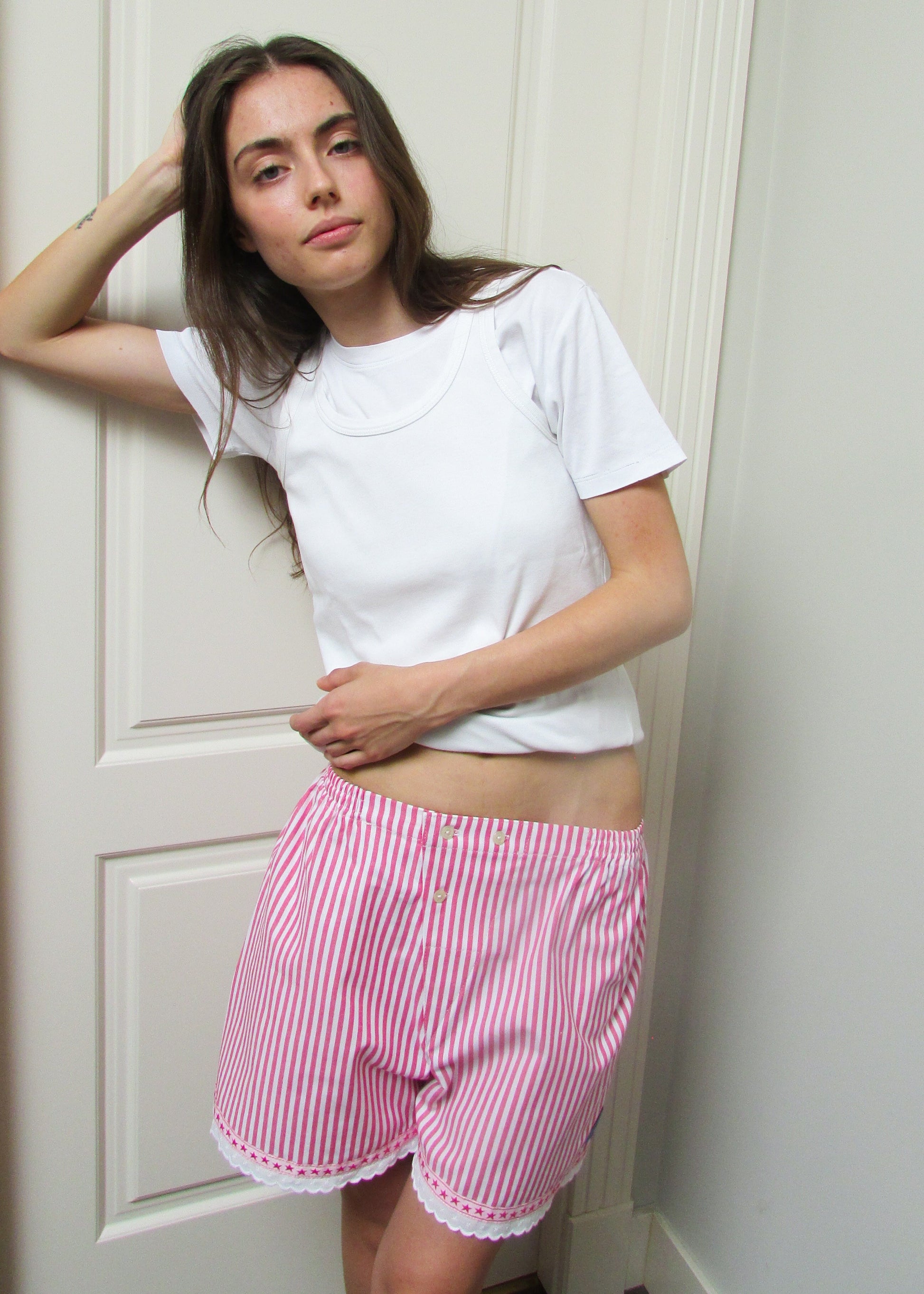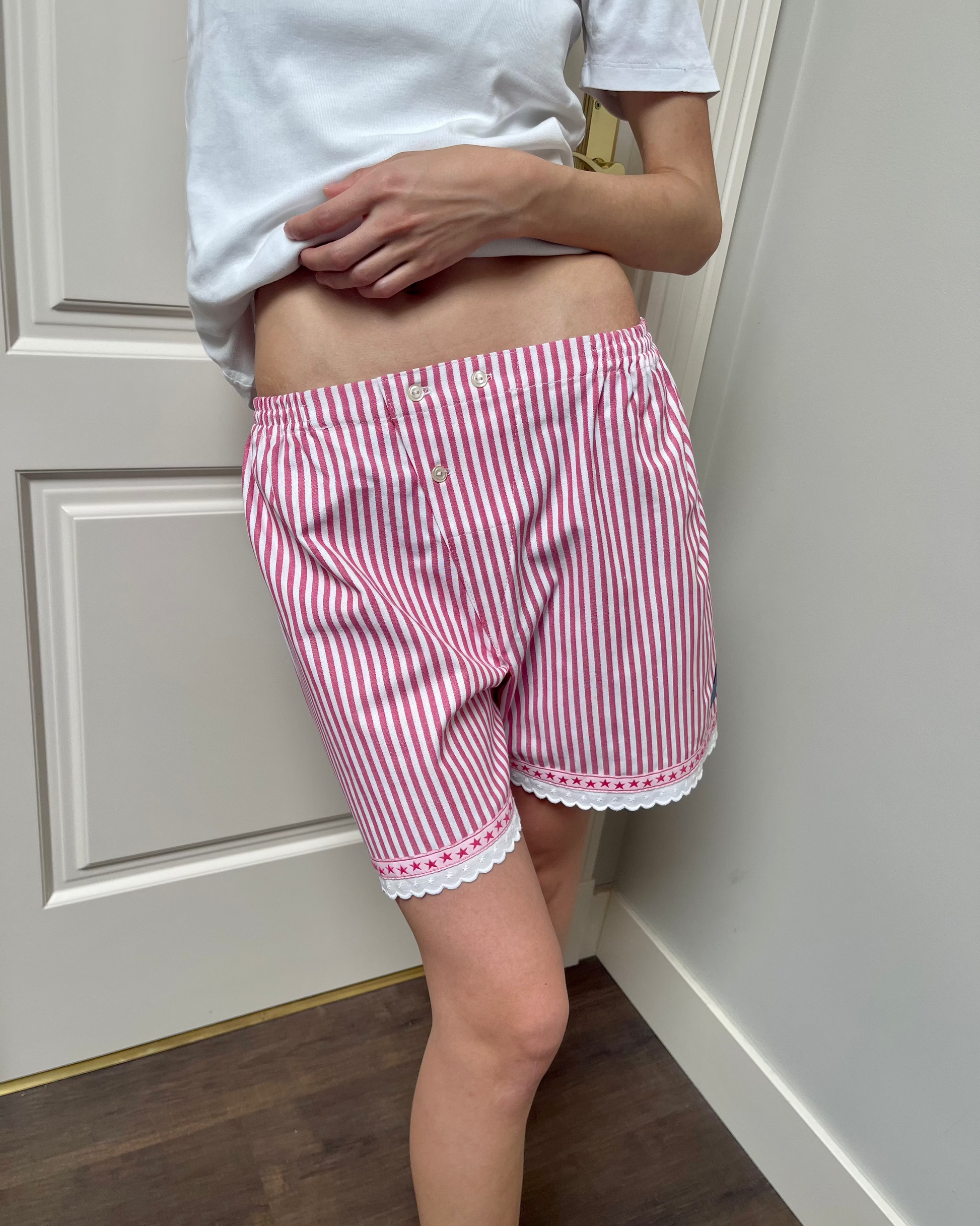 Detalle especial en el bajo con cinta de estrellas y volante.